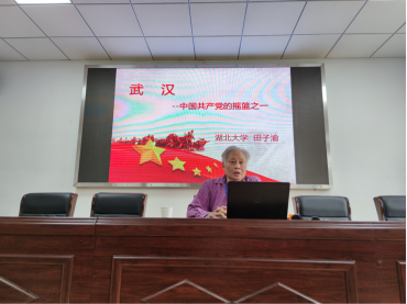 党史学习教育宣讲报告会暨“党史大家谈”系列活动(四)在学院410报告厅举行。学校党史宣讲团成员、党史研究专家田子渝教授作了题为“武汉——中国共产党的摇篮之一”的主题报告,全院教职工和学生党员参加学习。会议由学院院长熊友华教授主持。