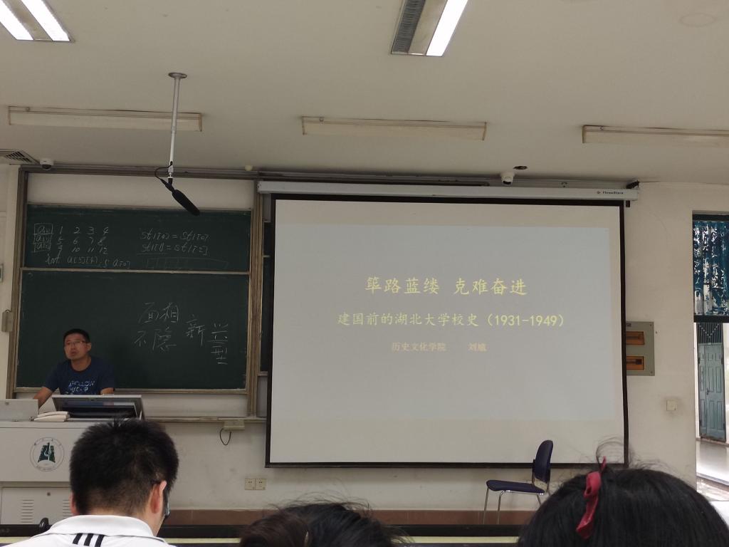 刘馗老师从“溯源湖大”、“浴火重生”、“国师时期”三个部分着手,给大家讲了学校从1931年成立到1949年间的光辉历史。他给大家讲述了学校建立最初的历史背景、建校目的以及全面抗战时期艰难重生的曲折过程,介绍了第一任院(校)长黄建中先生以及为学校发展作出卓越贡献的汪奠基院长等先辈,展示了过去招生简章、课程设置等诸多珍贵的老照片,让大家对学校建国之前的历史有了更加深刻的了解