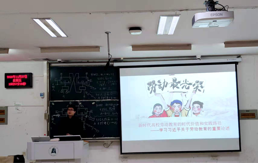 思想政治教育专业17、18、19级全体学生进行了“新时代高校劳动教育的时代价值和实践路径”的主题授课,并带领同学们学习了习近平总书记关于劳动教育的重要论述。