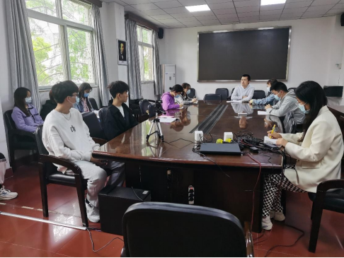 在四楼会议室召开4月份学生党建工作例会,学院党委秘书邹浩、各学生支部委员、团支部书记参加例会。会议由邹浩主持。