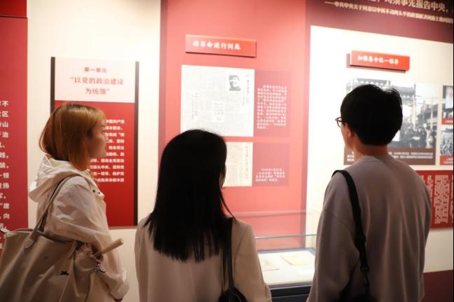 党日活动结束后,在讲解员的带领下,党员同志们又一同参观了由武汉革命博物馆、香山革命纪念馆联合举办的“永葆青春活力——香山时期中国共产党自我革命实践专题展览”。展览由序篇“党对自我革命的探索与实践”和“立好规矩 进京‘赶考’”“从严治党 香山答卷”“凝聚民心 汇聚力量”三个部分组成,全面生动展现香山时期中国共产党自我革命的伟大实践,深入阐释从严管党治党的历史意义和时代价值,激励我们继续发挥彻底的自我革命精神,永葆“赶考”的清醒和坚定,奋力走好新的赶考之路。
