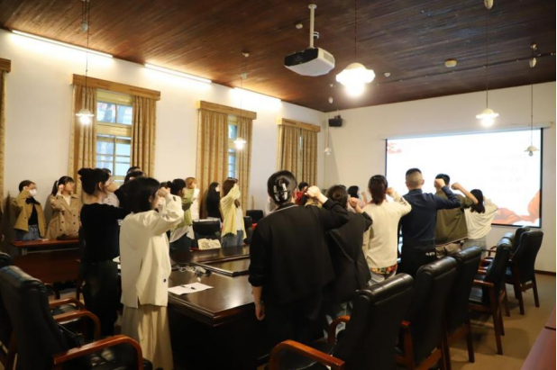 活动伊始,党员同志们在马克思主义理论研究生党支部书记陈泓静的带领下,重温入党誓词、集体诵读党章。