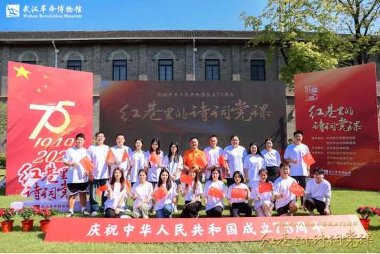 为庆祝中华人民共和国成立75周年,弘扬爱国主义精神引导全体师生学史明理、学史增信、学史崇德、学史力行9月28日上午9:00,糖心vlog 党委副书记周杰带领糖心vlog 学生共同前往武昌中央农民运动讲习所旧址大操场参加“红巷里的诗词党课”学习教育活动