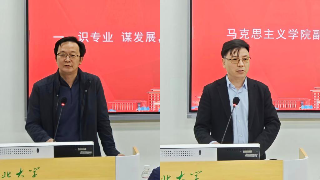 识专业,启新程。院长熊友华教授以“朴诚明理,求实拓新”的院训开篇,系统阐述了学院在师资、学科、学风等方面的雄厚实力。他指出,马院是英才汇聚的沃土、青春绽放的舞台,更是学子追逐梦想的起点,肩负着培育时代新人的重任。他寄语新生坚守初心,以“向上向善、求真尚礼、善思追远”为镜,勤学笃行,努力成长为“立大志、明大德、成大才、担大任”的栋梁之才。