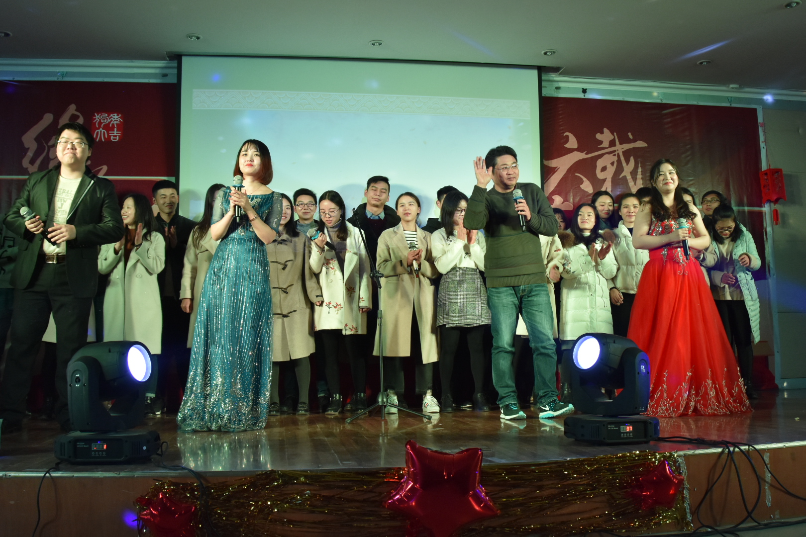 所走过的六载年华,也凸显了马院全体师生亲如一家人的浓厚师生情谊,微信互动平台、抽奖环节以及穿插在节目中的小游戏吸引了全场观众的积极参与,为大家带来了一场趣味十足、热闹非凡的晚会。