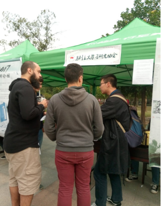 三个社团提前到场放置海报,活动期间在涌动的人群中分发宣传单,社团各个成员也耐心向学生介绍社团基本情况和日常活动的概况,其中马列协会采用播放《国际歌》的独特方式,吸引了不少的兴趣相投者,助推了此次招新的圆满成功;廉政和沙湖分别对外展示了自身社团发展历史和进程,为社团成功纳新的同时也同样传递了学术之光。2016级社员谢梦男说:“加入马院的这三个社团,希望能够融入到这个团体和学长学姐们好好学习知识,丰富自己的实践经验和校园生活。”