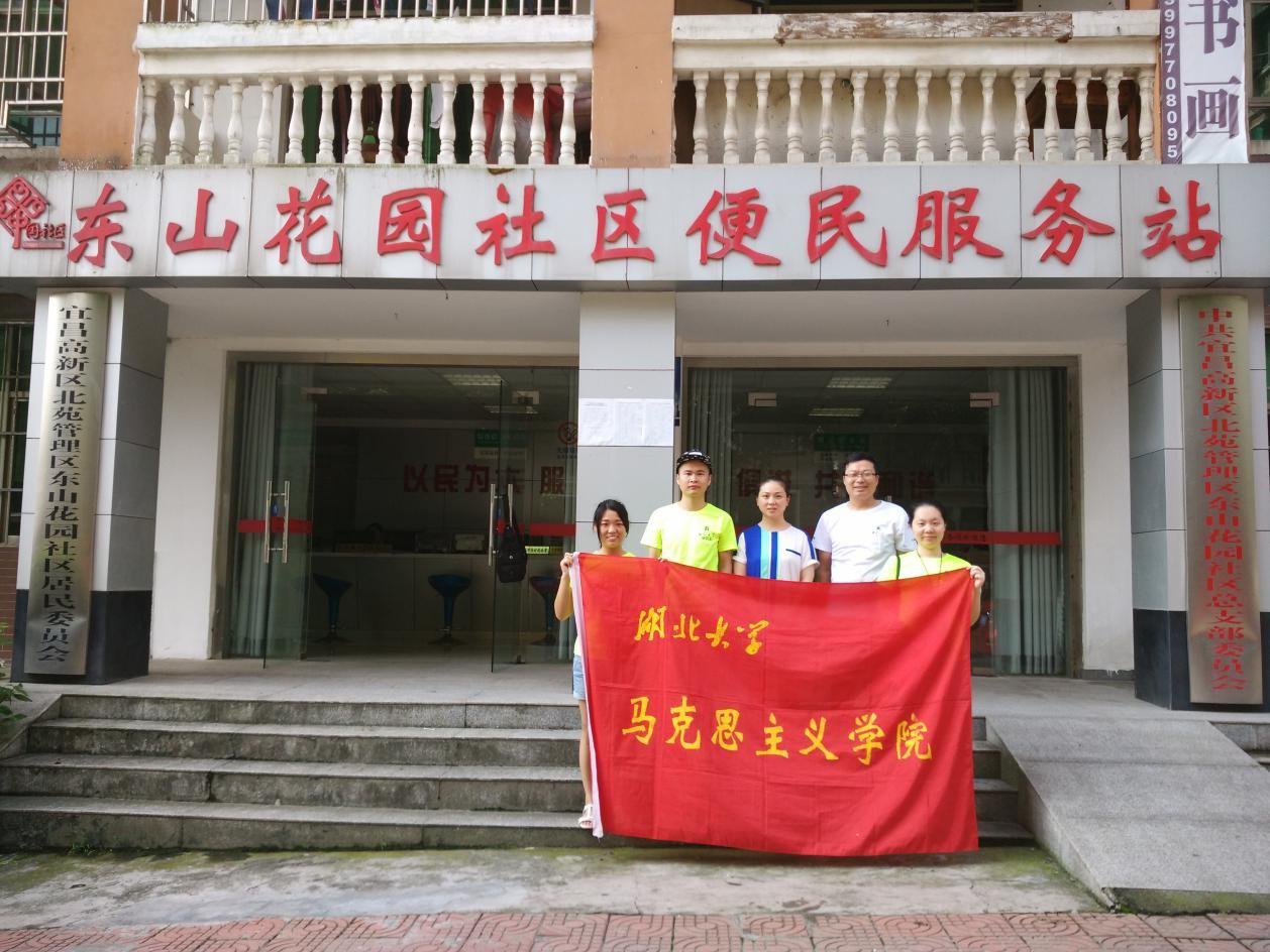 队员们来到了宜昌市东山花园社区居委会进行调研。在居委会热情帮助下团队顺利完成了问卷的发放回收并与团队就居委会与街道办事处的关系等相关问题进行了探讨交流。
