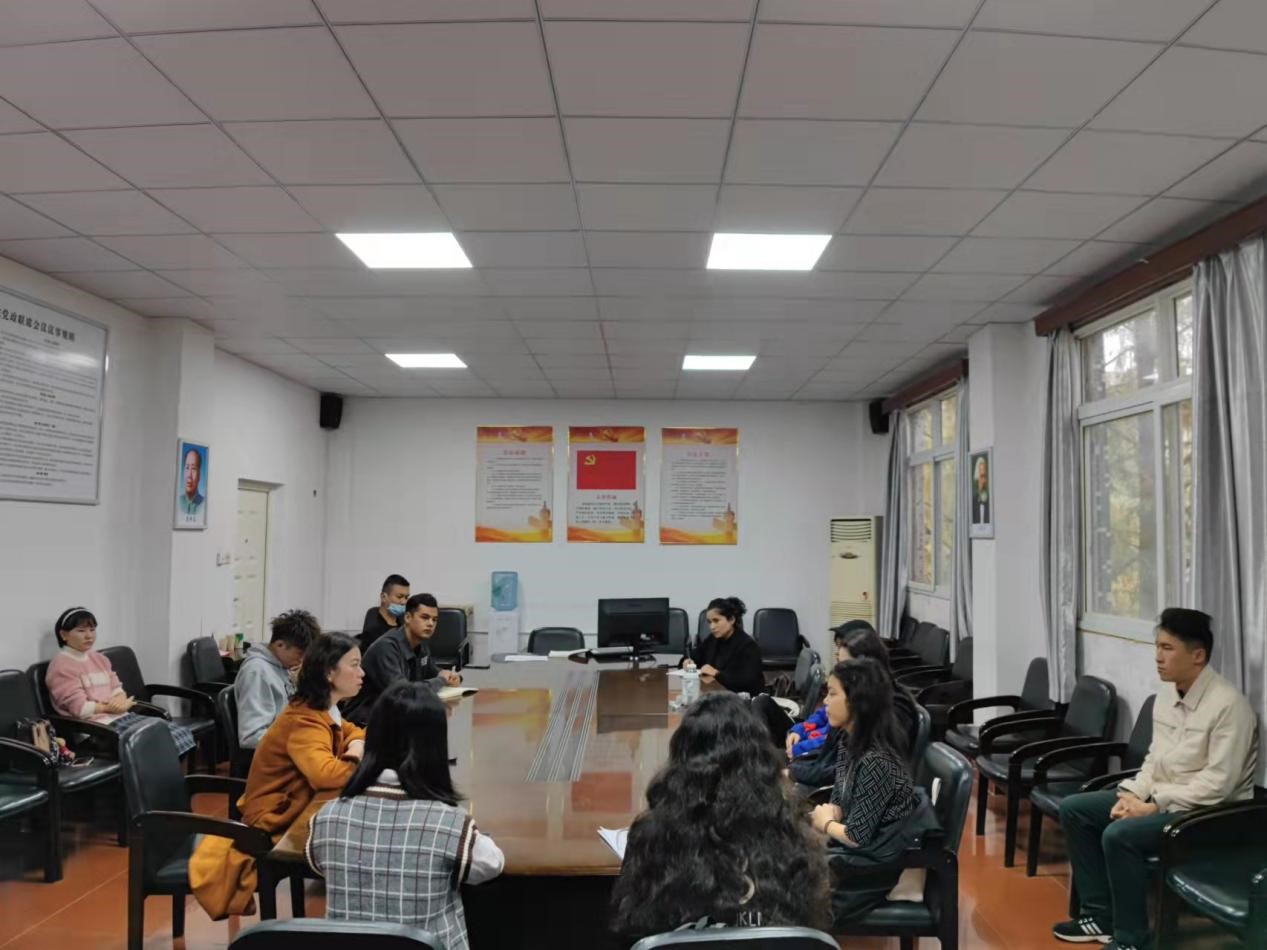 在学院四楼会议室开展新疆籍少数民族学生工作例会。学院党委副书记晏妮、辅导员邹浩、少数民族辅导员美娅莎以及新疆籍少数民族学生参加本次会议。