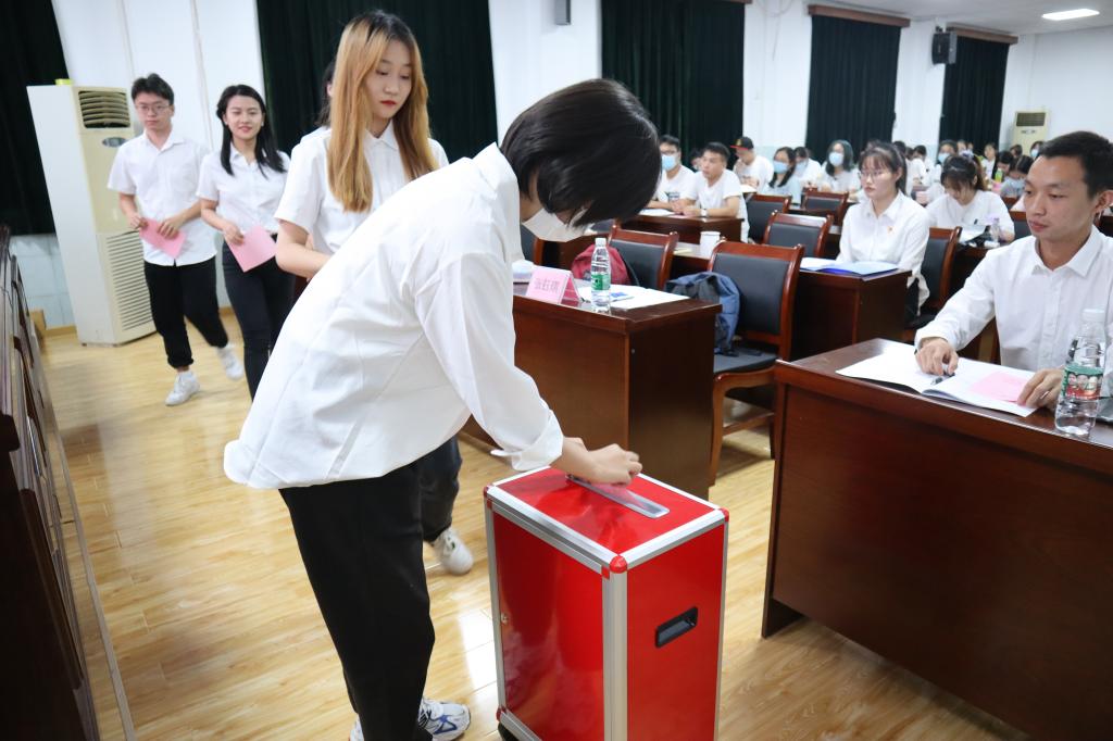 在对第十届学生委员会委员候选人名单进行无记名投票选举候选人的过程当中,参与会议的76名学生代表秉着公平、公正的原则进行投票,大会开展井然有序。总监票人、监票人和工作人员加封票箱,在选举现场计票,由总监票人宣读结果,并公示选举产生新一届学生会组织领导机构。蹇旺福、陈锐、施凯三名同学当选为糖心vlog