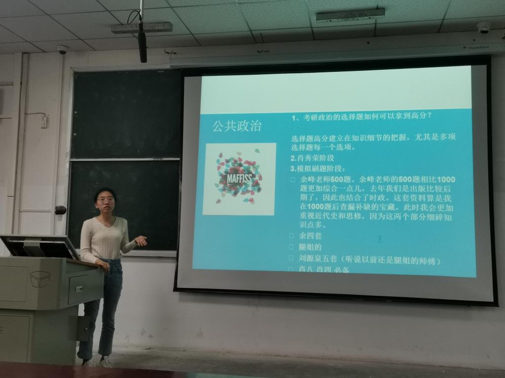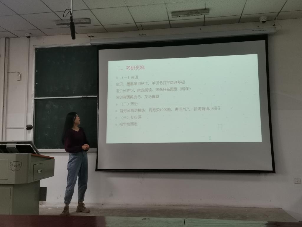 会议伊始,学长学姐们均对考研的重要性作出了强调,不论是学历的提升还是为了更好找工作,考研无疑会增加自己选择的机会。
