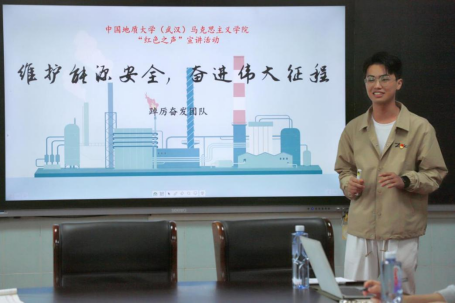 “红色之声”宣讲团成员钟绍斌以“维护能源安全,奋进伟大征程”为主题,紧密结合党的二十大精神和国际热点问题,讲解了能源安全的新内涵,指出了能源安全对于我国社会生产、民生、国防等方面的重要性,并从国家举措、高校作为、青年担当三个层次提出了应对之策。