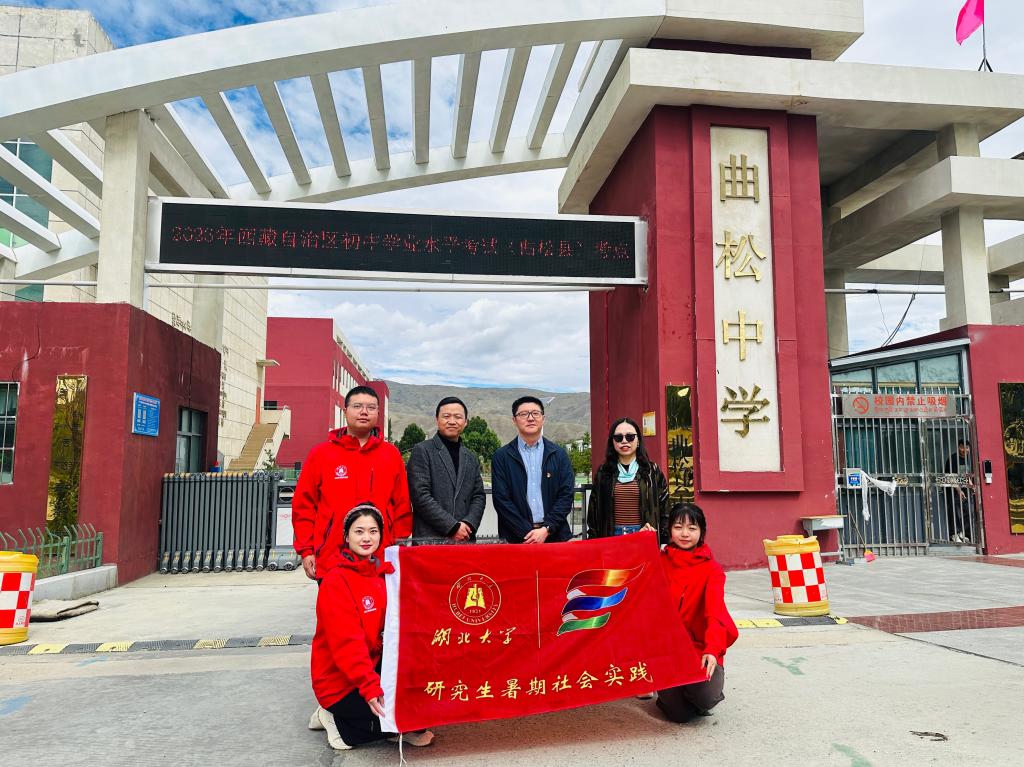 第四批研究生赴藏支教团赴山南市曲松县开展“教育促民族团结研究”暑期三下乡社会实践活动。活动由山南市教育局党组成员、副局长施维带队,山南市东辉中学校长刘艳、支教团成员孙艳新、雷伊蕾、乐泽峰共同参加。