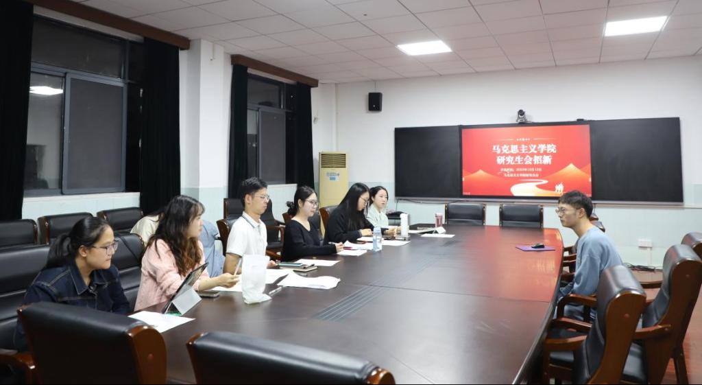 第十二届研究生会招新面试在学院四楼2号会议室、五楼507教室举行。学院党委副书记晏妮、辅导员冷自衍、研究生办公室许琰出席并担任评委,与第十一届研究生会主席团成员及各部门部长组成考评委员会进行面试。学院2023级马克思主义理论、2023级学科教学(思政)、2023级农村发展,3个专业共计48位同学参加此次招新面试。
