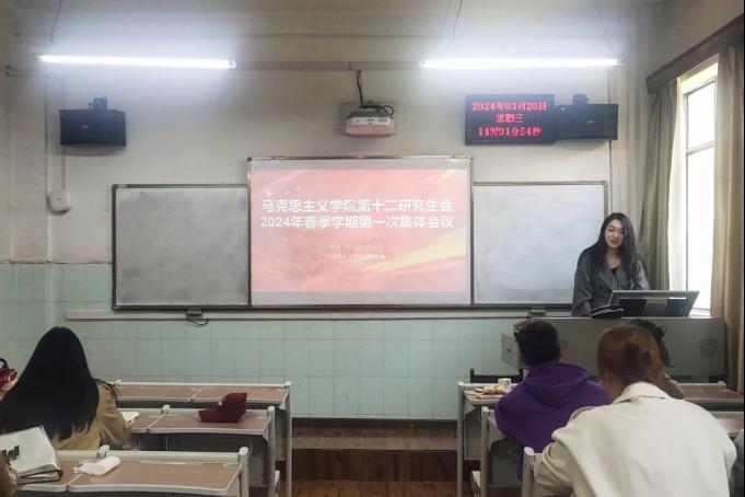 研究生会在二号教学楼215教室召开2024年春季学期第一次集体会议。本次会议由主席团成员刘卓凌主持,辅导员冷自衍、第十二届研究生会成员参与本次会议。