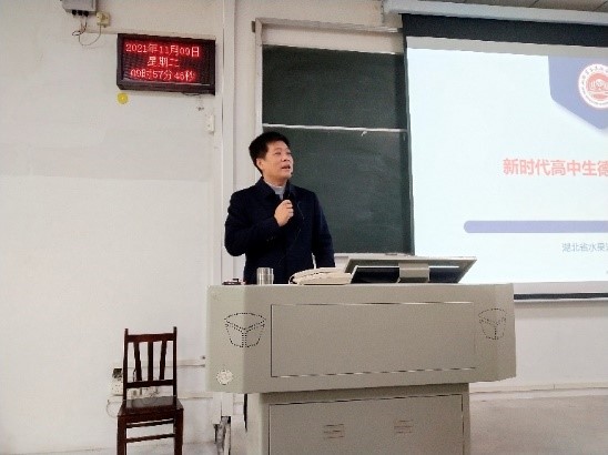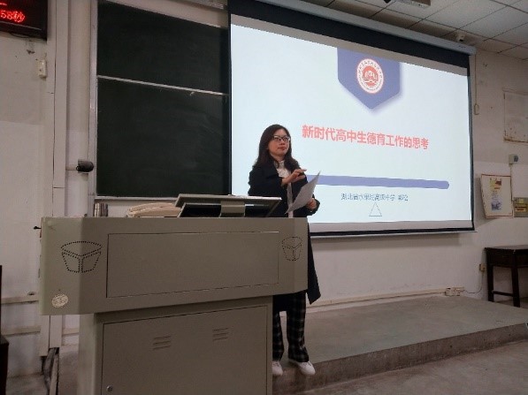 2018级和2019级思想政治教育专业的同学开展了题为“新时代高中生德育工作的思考”的讲座,讲座由胡银银老师主持,学院杨海军老师参加讲座。