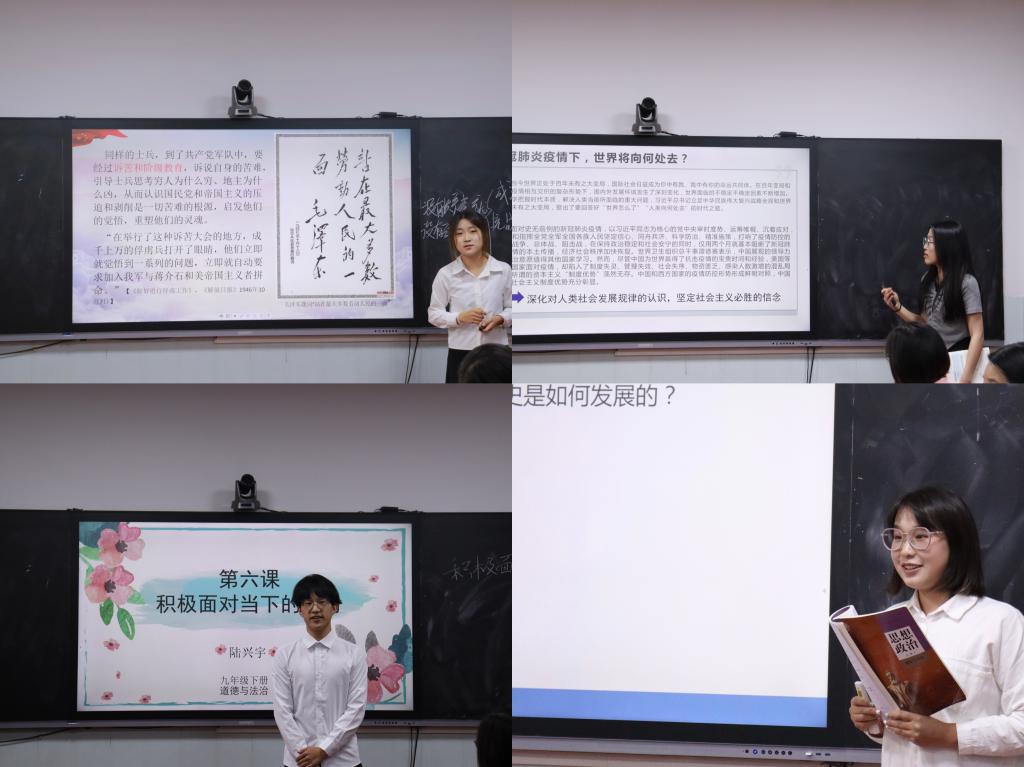 各位参赛选手同台竞技,各展风采,他们用饱满的热情、精彩的案例、严密的逻辑,掀起教学技能比拼的热潮。思想政治教育专业2001班王子怡说:“此次比赛真是‘神仙打架’,同学们的表现深深震撼了我,也激励着我不断向前。”