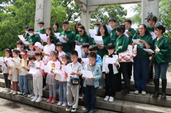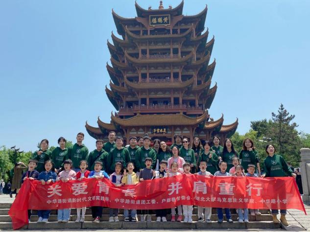 硕士研究生汪亚平为大家讲述岳飞“尽忠报国”的爱国主义精神和“严于律己,宽以待人”的处世之道,并带领大家在岳飞铜像下集体朗诵《满江红·登黄鹤楼有感》。随后,大学生们带领小学生们寻访白云阁,撞击千禧钟,登上黄鹤楼,领略中国优秀传统文化的魅力。