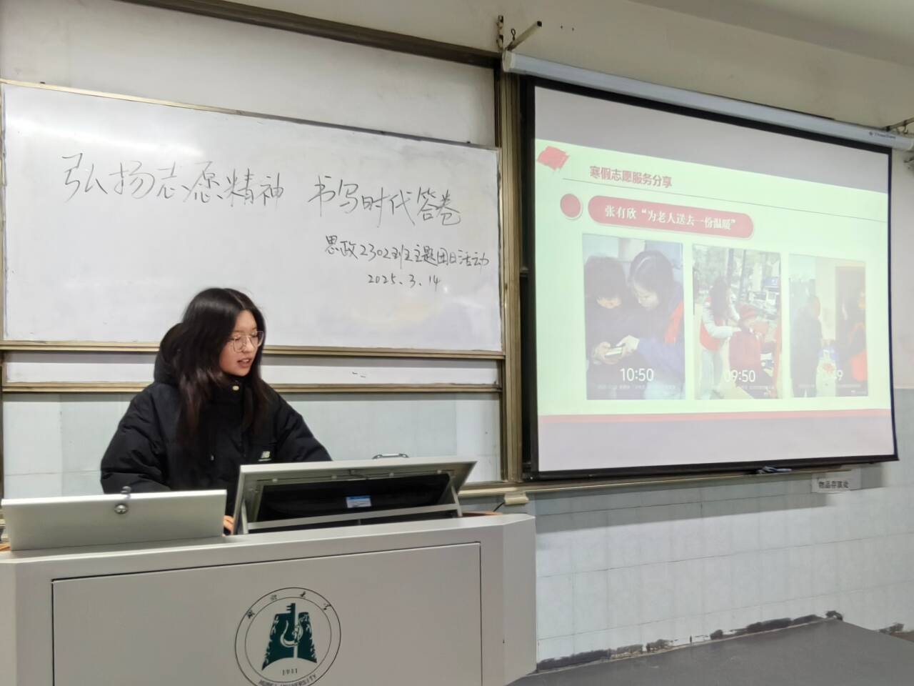 为重温雷锋同志先进事迹,深度探讨志愿精神在新时代的传承价值与实践路径,3月14日,思想政治教育2302班团支部举办“弘扬志愿精神 书写时代答卷”主题团日活动。此次活动由团支书王卓越主持,支部全体团员积极参与,思政2301班团支书特邀参加了此次活动。