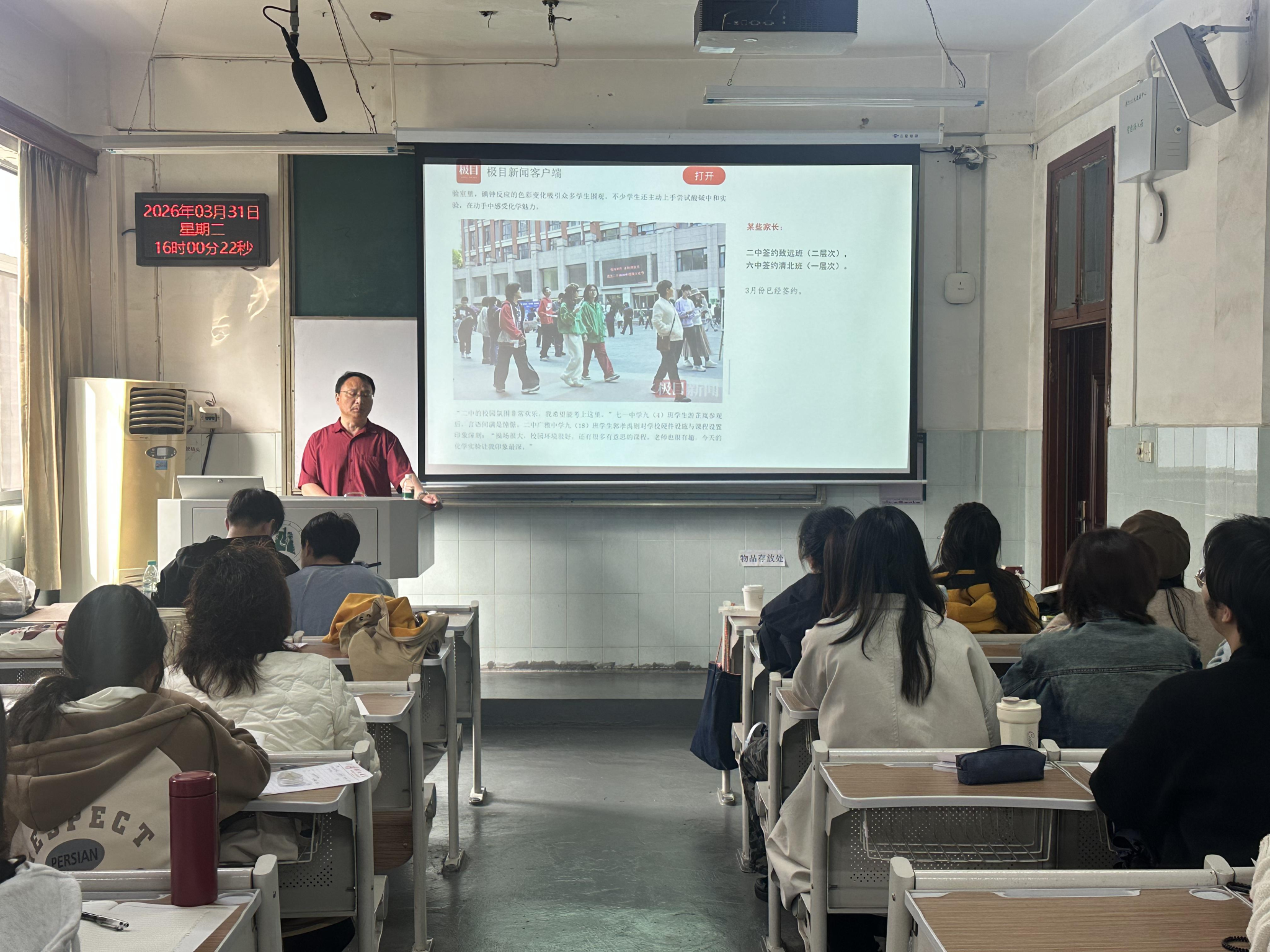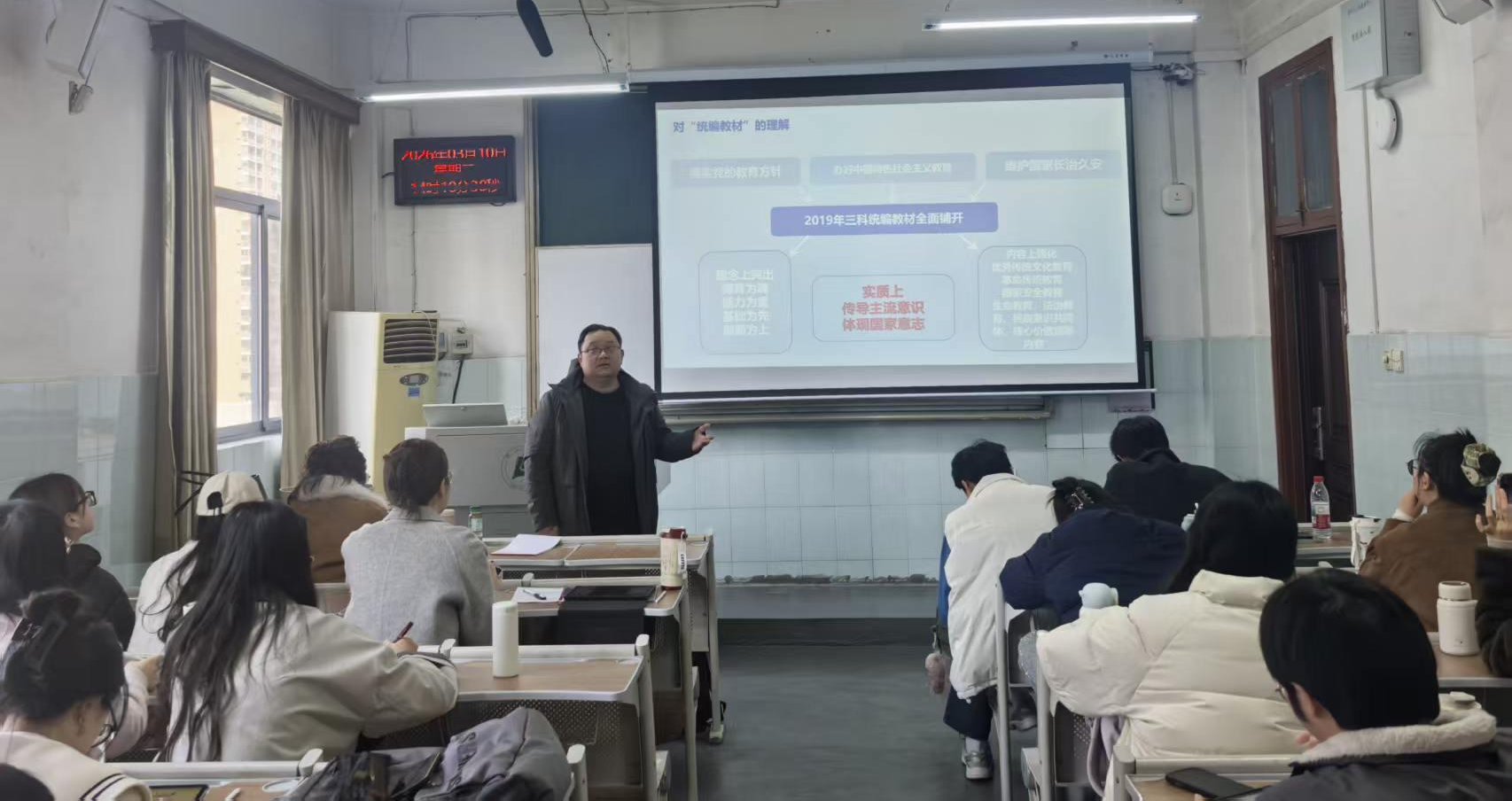 学科教学(思政)硕士培养点,邀请武汉市特级专家、教学名师进课堂,为2025级学科教学(思政)专硕研究生常态化开展“大中小学思政课一体化示范课堂”系列教学活动。活动特邀五位武汉一线资深思政教师、教研员轮番走进课堂,以“双师课堂”为核心载体,围绕思政课建设、大单元教学、情境教学思维、职业发展等关键议题展开深度分享,通过“高校导师+一线名师”的双师联动模式,实现优质教育资源跨学段共享、教学经验双向赋能。