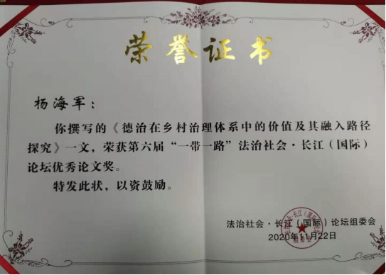 学院杨海军老师应邀参加,提交了会议论文:《德治在乡村治理体系中的价值及其融入路径探究》,被论坛学术委员会评为优秀论文。2020级研究生史娇艳、陈祥华、魏子云参加了本次国际论坛。