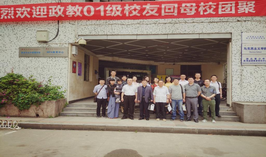 政教01级校友重返母校聚首,并举行座谈会。院党委书记汤德森、院党委副书记王雄和原政教系领导、老师与校友们在学院四楼会议室亲切座谈交流,对校友返校探望母校及恩师表示热烈欢迎,校友们重温了久违的同学情谊,师生情谊,追忆了在湖大度过的美好青春岁月。