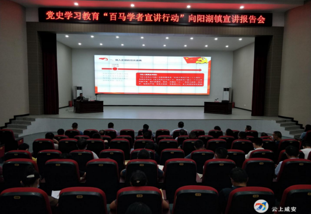 为深入学习领会习近平总书记“七一”重要讲话精神,同时将学习成果运用到乡村振兴和服务群众的具体工作中,2021年7月26日,咸安区向阳湖镇举办党史学习教育“百马学者宣讲行动”宣讲报告会,学院教师杨海军副教授和王昊博士为向阳湖镇村党员干部集中宣讲习近平总书记“七一”重要讲话精神。咸安区委宣传部副部长熊鸣、咸安区委宣传部理论科科长李伟、咸安区向阳湖镇全体领导班子成员及镇村党员干部等参加了宣讲报告会。