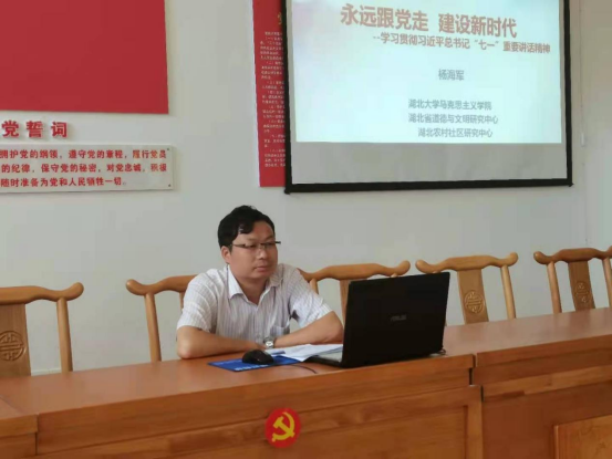 杨海军副教授以《永远跟党走,建设新时代》为题,从“七一”重要讲话精神的重要意义、主要内容、如何贯彻等三方面向村党员干部宣讲了习近平总书记“七一”重要讲话精神。