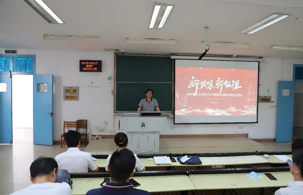9月22日下午,我院2021级研究生新生师生见面会在教4-407教室举行。我院党委书记刘柏林、院长熊友华、党委副书记晏妮,副院长易振龙,研究生导师以及2021级全体研究生新生参加了此次见面会。会议由副院长易振龙主持。