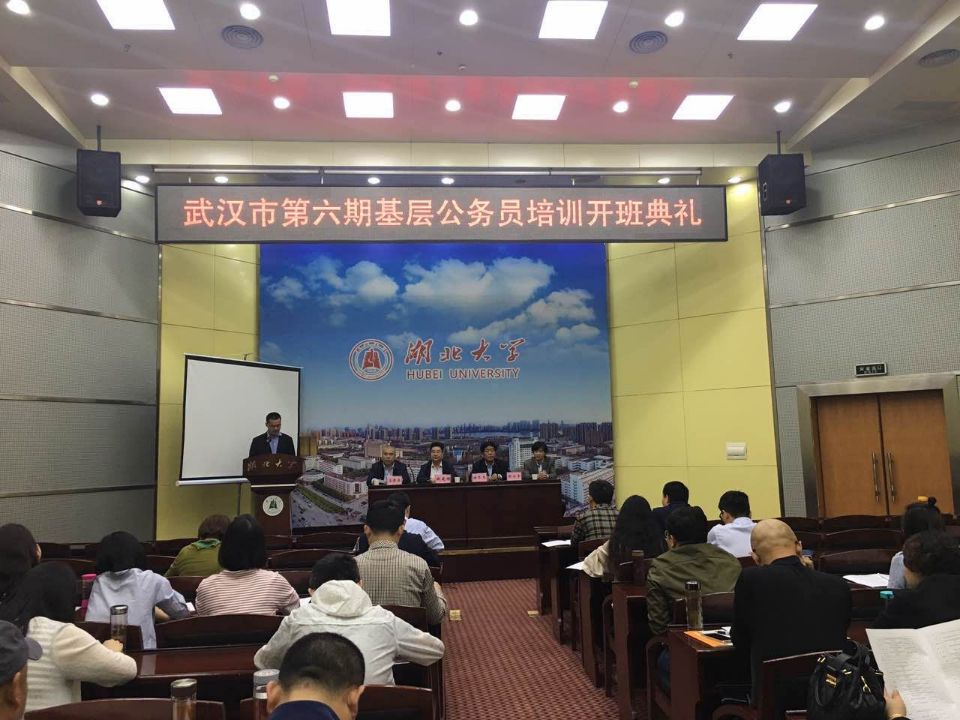 与武汉市人社局连续第三年合作开办的基层公务员培训班。本期培训班以加强基层干部的理想信念为首要任务,着力于反腐倡廉建设与职业道德建设,提高基层公务员思想文化水平,建构基层文化软实力,认清经济发展新形势与公务员使命等问题,优化基层干部队伍知识结构,提高思想政治素质,造就一支政治信仰坚定、精神追求高尚、服务意识强烈、人民群众满意的基层干部队伍。