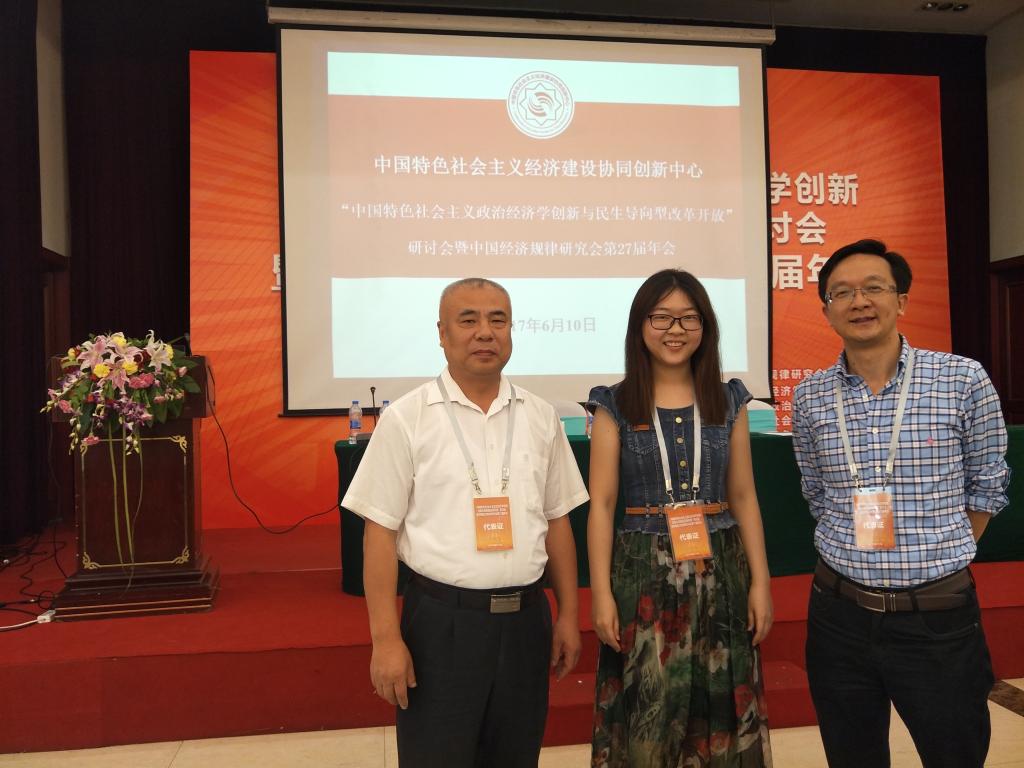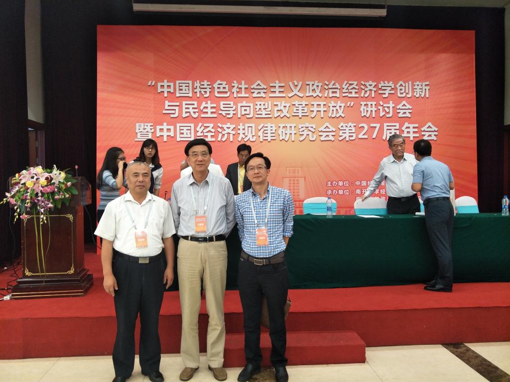 6月10日至11日,“中国特色社会主义政治经济学创新与民生导向型改革开放”研讨会暨中国经济规律研究会第27届年会在天津市南开大学顺利举行。中国社会科学院马克思主义研究学部主任、中国经济规律研究会会长程恩富,中国特色社会主义经济建设协同创新中心主任、南开大学经济学院教授逄锦聚等来自全国80余所高校、研究机构和媒体的130余名专家学者齐聚南开,共话“中国特色社会主义政治经济学创新与民生导向型改革开放”。院党委书记汤德森、副院长熊友华带领2016级硕博连读研究生沈钰晶参会。