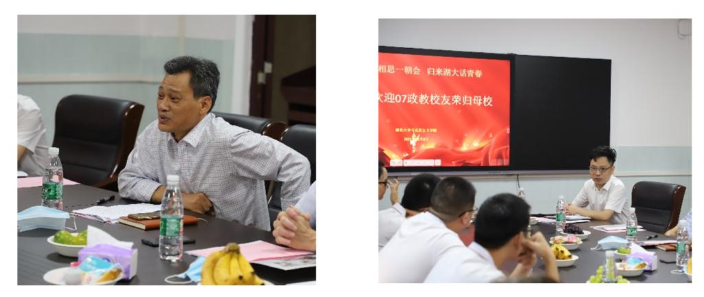 同学们回到母校再次聆听学院领导和老师们的谆谆教导,心怀感恩,深受感动,纷纷有感而发。毕业后在北师大读研现从事园林工作的赵银斐同学,分享了自己多岗位工作的感受,她十分感激学院老师的培养和教诲,表示将继续秉承政教人的务实精神,心怀敬畏,立足工作岗位积极发挥自己的价值;现就职于迈瑞医疗的叶培亮同学,对学院领导和老师当年对他的教导仍记忆犹新,政教专业的学习让他的思想一步步觉醒,为他之后的学习工作给予了很多帮助;在赤壁中担任高三政治老师的张冬同学分享了作为一名中学政治教师的感受,并表明了思政教育对学生成长的重要性。三个小时的座谈会,大家畅所欲言,欢声笑语不断,或聆听老师教诲,或分享工作经验,或谈谈生活感悟,在这里,大家依然是团结奋进积极向上的07政教一家人。