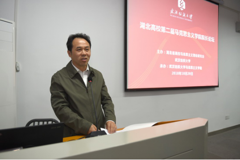 湖北省委宣传部副部长喻立平、湖北省社会科学界联合会党组成员、副主席刘宏兰、武汉纺织大学党委书记韦一良、湖北省教育厅思政处处长何泽云、湖北省高校马克思主义理论教育研究会秘书长李资源出席论坛并致辞,湖北省委宣传部理论处处长高天琼等全程参与论坛研讨。