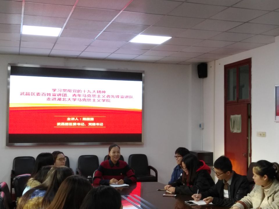 本次报告紧紧围绕十九大展开,分别从深刻领会中国特色社会主义进入新时代、准确把握新时代青年担当以及争当全面发展的时代先锋三个方面阐释了青年马克思主义者应该有什么样的担当、如何担当的重要问题。首先,陈书记带领同学们回顾了十九大重要内容和意义,从四句评价、三大成果、三大改观以及四大里程碑这四个方面有序凝练了十九大的深刻内涵和划时代意义。接着,陈书记阐释了“新变革”、“新矛盾”以及“新征程”三个新时代的特征,与同学们分享了如何深刻领会中国特色社会主义进入新时代这一重要命题。再次,陈书记从历史进程中的青年担当和习近平总书记寄语青年两个方面阐述了如何准确把握新时代青年担当。陈书记指出,“五四”时期以来,中国青年勇于担当自己的时代责任,积极传播马克思主义并投身于解放和建设中国的伟大实践。进入新时代,青年的使命就是要积极投身于建设富强、文明、和谐、美丽的中国的伟大实践,自觉地成为勇于担当的马克思主义者,为实现中华民族伟大复兴接力奋斗。最后,陈书记从新时代的坚定者、奋进者和搏击者三个方面论述了如何争当全面发展的时代先锋。她寄语在座青年学子,要坚定不移地以习近平新时代中国特色社会主义思想为指导,胸怀理想,自觉把个人理想追求融入国家和民族的事业中,深耕笃学、苦练本领,永不懈怠、开拓创新,以“功成不必在我,功成必定有我”的积极心态投身于新时代中国特色社会主义伟大实践。