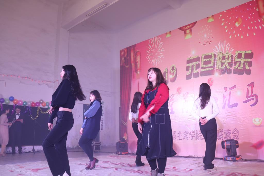 在马院老师精彩的表演之后,同学们更加活跃地展现自己的特色,16级的《等你下课》+《晴天》让大家如痴如醉,17级的《去年夏天》带我们回到夏天,在冬天感受到了温暖,18级的《走马》+《夏天的风》+《淘汰》等歌曲串烧深受同学喜欢,以及16级表演的压轴舞,不仅展现了马院学生积极向上和青春活力,更展现了马院一家亲!