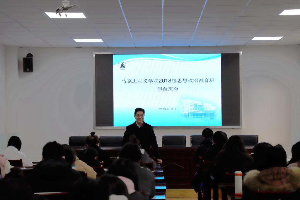 副校长钱建国作为副班主任出席本次班会,2018级思政专业全体同学参加,班主任邹浩老师主持会议。