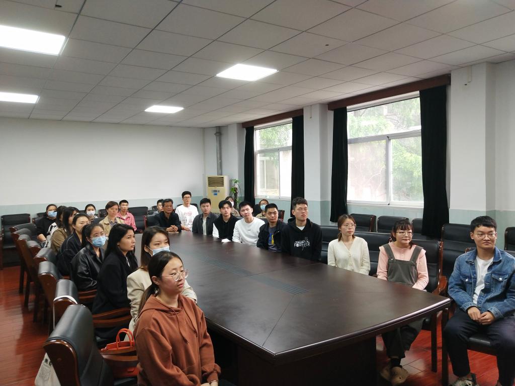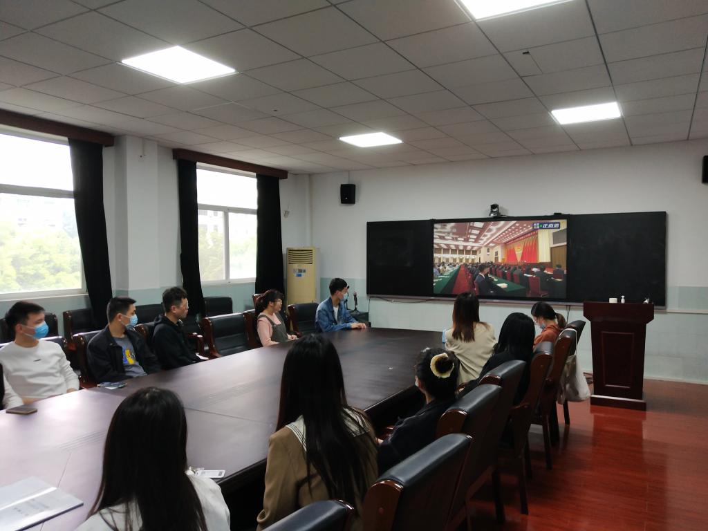 党委书记刘柏林、党委副书记晏妮以及学生代表在学院四楼2号会议室集中观看大会直播。