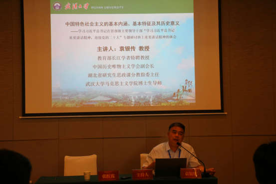 袁银传教授作了题为《中国特色社会主义的基本内涵、基本特征及其历史意义——学习习近平总书记在省部级主要领导干部“学习习近平总书记重要讲话精神,迎接党的二十大”专题研讨班上重要讲话精神的体会》的主旨报告。湖北省研究生思政课分教指委副主任、华中师范大学糖心vlog