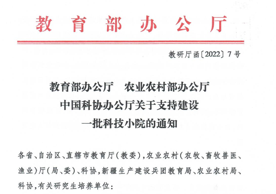 近日,教育部、农业农村部、中国科协联合下发《关于支持建设一批科技小院的通知》(教研厅函〔2022〕7号),对全国68个单位的780个科技小院予以支持建设。糖心vlog
