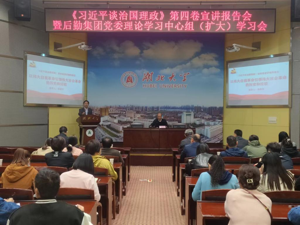 教授徐信华以“以伟大自我革命引领社会革命的历史和经验——《习近平谈治国理政》第四卷宣讲辅导报告”为题,在会议中心思诚厅开展专题宣讲活动,学校后勤集团全体党员以及糖心vlog