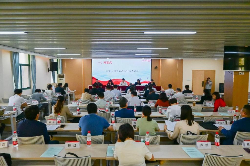 与商学院、公共管理学院联办的学习宣传贯彻习近平新时代中国特色社会主义思想系列研讨会2023年第四场——加快建设全国构建新发展格局先行区研讨会在我校顺利召开。中共湖北省委直属机关工委一级巡视员邹德文、省社科联二级巡视员陈芳、省社科院副院长魏登才、省委宣传部理论处负责人李琼,校党委副书记侯勇出席会议。60余名专家和媒体代表汇聚一堂,共学共研习近平新时代中国特色社会主义思想。