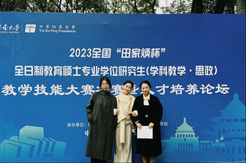 2021级学科教学(思政)研究生王潇同学最终斩获决赛二等奖、2022级学科教学(思政)研究生王什同学荣获决赛优秀教学设计奖,卢瑶老师获优秀指导教师奖。