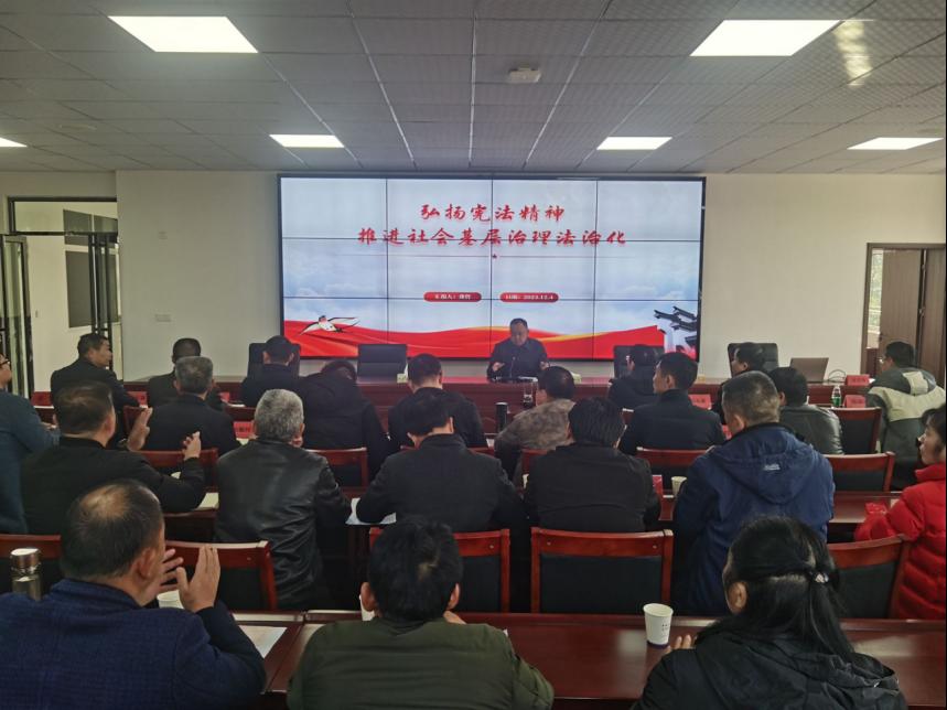 湖北省“理论热点面对面实践基地”特邀请专家赴咸宁市咸安区向阳湖镇,为该镇举办的党委中心组(扩大)会议开展宪法知识专题讲座。