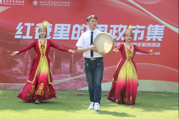 木塔力甫·玉苏甫同学以手鼓表演《映山红》的方式,深情演绎了苏区人民对红军的期盼与革命意志,将这首经典红歌赋予了新的生命力。