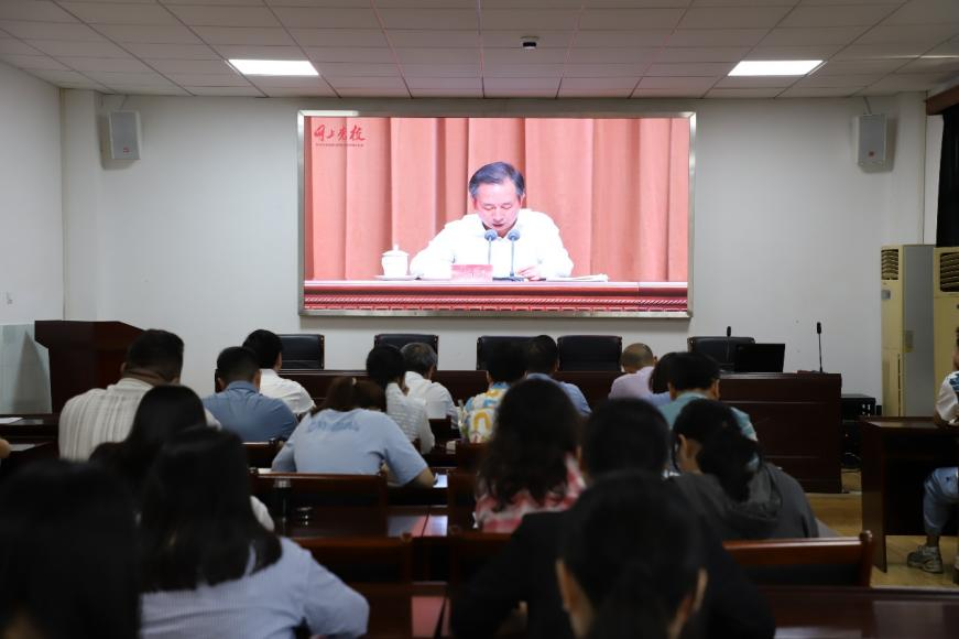 四楼学术报告厅召开。学校党委书记谢红星、校党委宣传部常务副部长何顺进、党委副书记周杰、副院长易振龙、副院长徐信华、学校思政课老师参加开班式并集中收看学习。