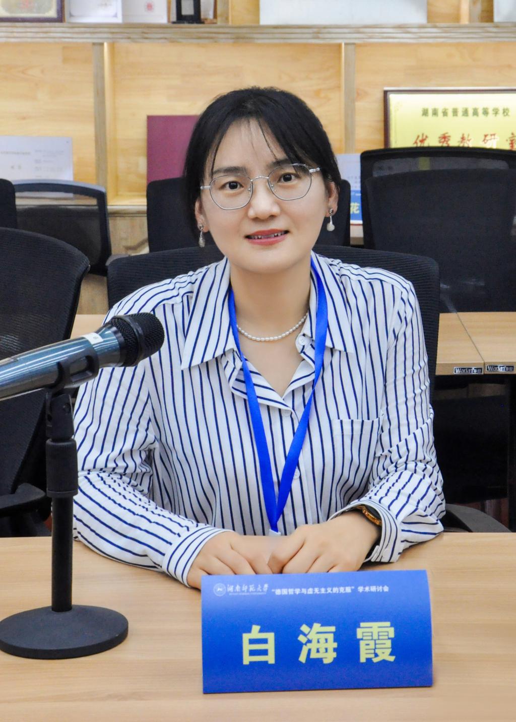 白海霞,女,中共党员,1984年9月出生,哲学博士。2004年至2008年就读于南昌大学人文学院哲学专业,获得哲学学士学位;2008年至2016年就读于武汉大学哲学学院外国哲学专业,先后获得哲学硕士学位和哲学博士学位。主要研究方向为德国哲学、伦理学、国外马克思主义。现主要讲授本科生《马克思主义哲学基本原理》、《思想道德修养与法律基础》等课程。参与过多项国家级及省部级课题,在《道德与文明》、《哲学评论》、《理论月刊》等期刊上发表多篇文章。